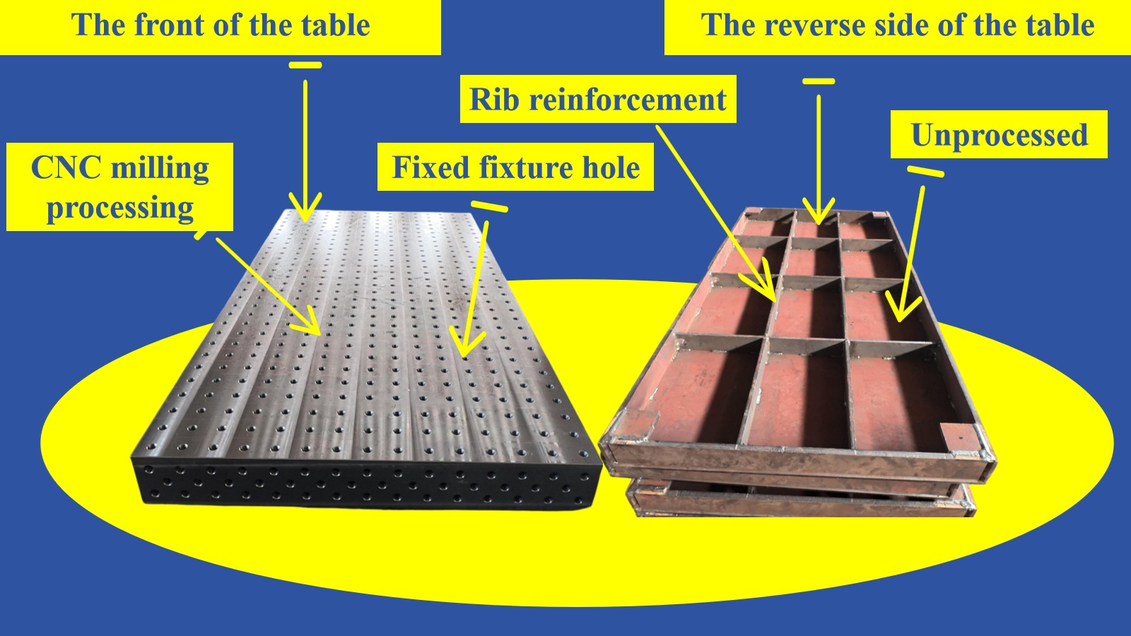 Večnamenska prilagodljivost: mizna plošča ima vnaprej izvrtane pozicionirne luknje in položaje za namestitev vpenjal za hitro pritrditev različnih vpenjal orodij, ki so združljivi z različnimi postopki, kot je ročno obločno varjenje, varjenje z argonom in varjenje v zaščitnem plinu.