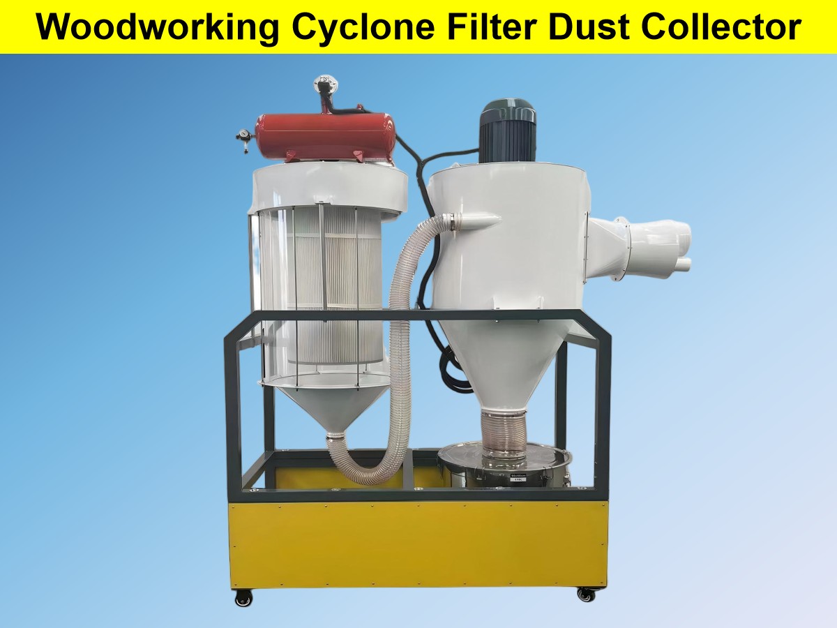 Ciklonski filtrirni zbiralniki prahu za obdelavo lesa so kombinacija ciklonskega ločevanja in filtracije s filtrirnimi vložki. Združujejo prednosti ciklonskih zbiralnikov prahu pri ravnanju z visoko koncentracijo grobega prahu z visoko natančnimi lastnostmi zbiralnikov prahu s filtrirnimi vložki pri filtriranju finega prahu. Posebej zasnovani za široko porazdelitev velikosti delcev žagovine in lesnega prahu v lesnoobdelovalnih delavnicah, njihova učinkovitost odstranjevanja prahu je veliko večja kot pri opremi z eno enoto.